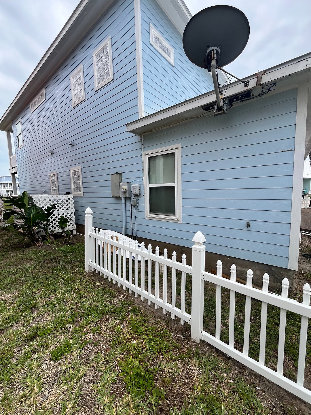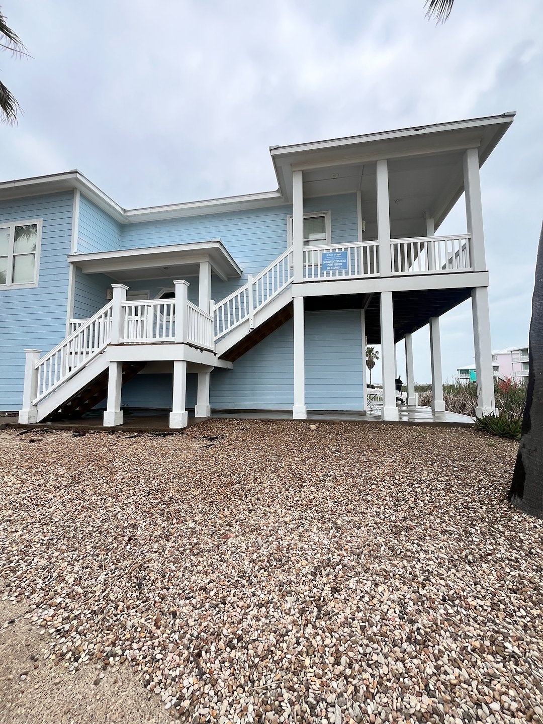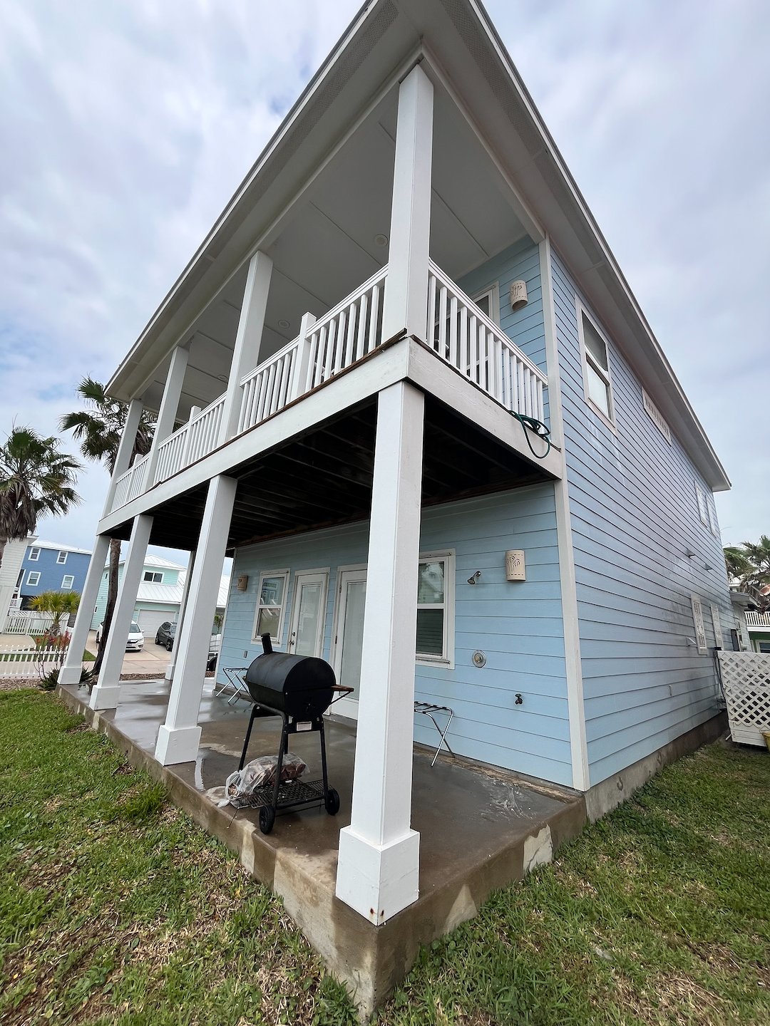 Mystic Pressure Wash LLC recently completed a full soft wash project on a beautiful Hardie board home in Port Aransas, Texas. Homes along the Gulf Coast are constantly exposed to humid, salty air and strong coastal winds, which makes exterior siding especially vulnerable to staining and organic buildup. This particular home had noticeable discoloration from salt spray, airborne dirt, and algae growth that had developed on shaded and moisture-holding areas of the exterior. The homeowner wanted to restore the clean, crisp appearance of their coastal property without the risk of damaging the Hardie board siding. Because Hardie board is durable but still vulnerable to the wrong pressure levels, soft washing was the ideal solution for safely revitalizing the home’s exterior. Our team assessed the property and applied our proven house washing process to eliminate the buildup while preserving the manufacturer finish and overall structure.