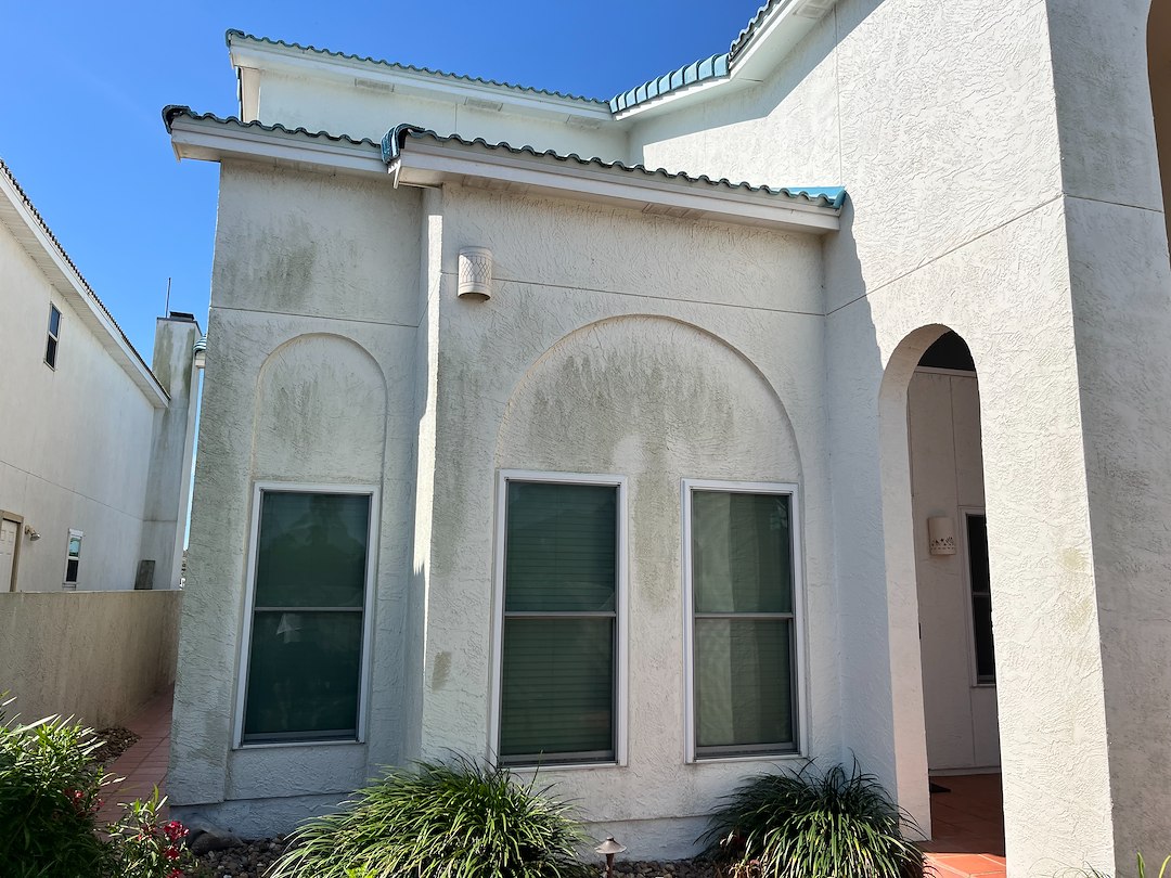 Mystic Pressure Wash LLC recently completed a full soft wash on a coastal stucco home in Port Aransas, Texas. Due to the salty air, high humidity, and frequent coastal breezes, stucco surfaces in this region are especially prone to algae growth and staining. This particular home had developed noticeable green discoloration across exterior walls, trim, and shaded areas where moisture tends to linger. The homeowner wanted to refresh the property’s appearance without risking surface damage that can occur with traditional high-pressure washing. Because stucco is a textured and porous material, it requires a controlled and careful approach to ensure the finish is not chipped, scarred, or eroded. Our team used our specialized soft washing method to fully restore the home’s exterior and bring back its original clean, bright appearance.